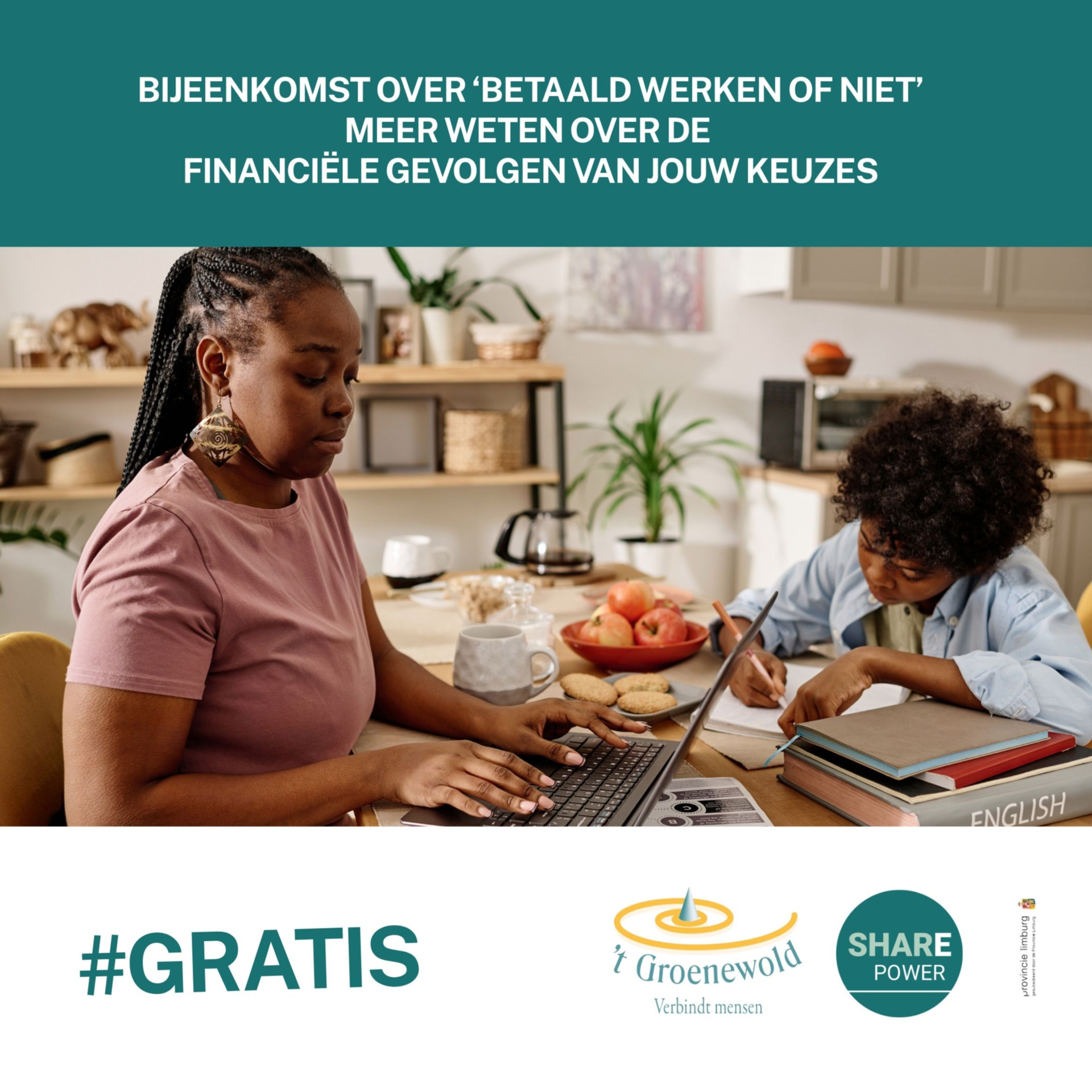 Informatiebijeenkomst over ‘Betaald werken of niet’, meer weten over de financiële gevolgen van jouw keuzes.