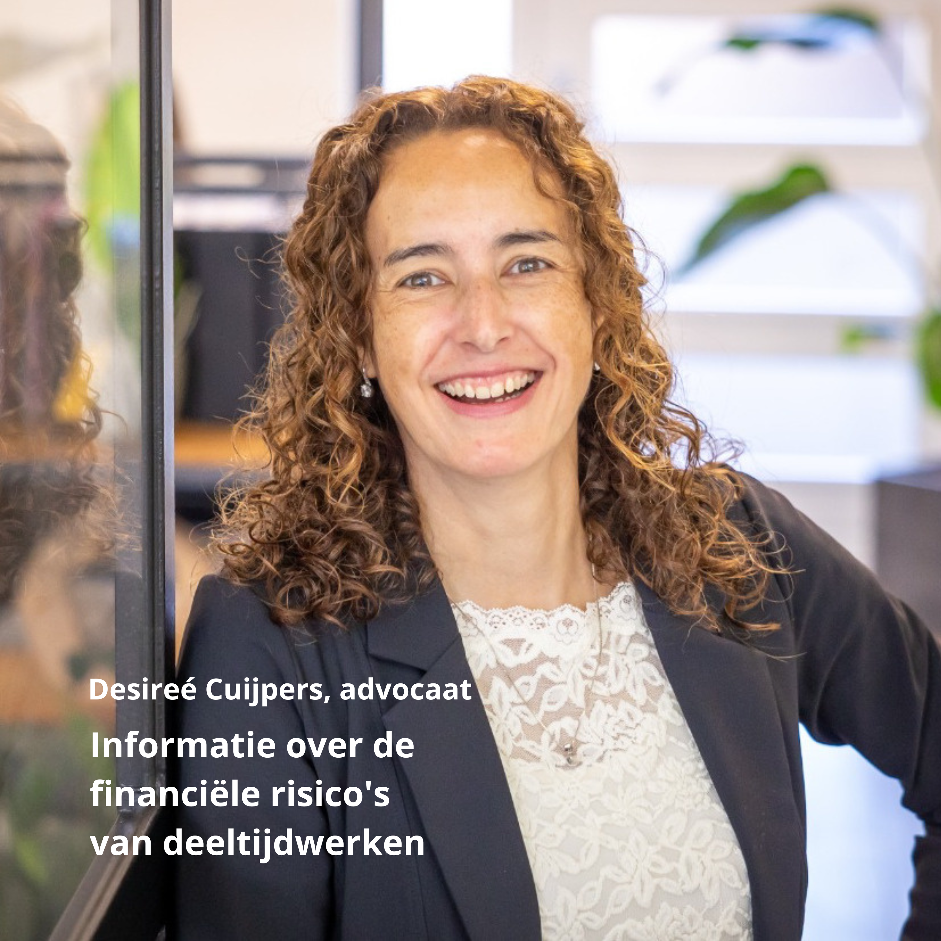 In gesprek met Desireé Cuijpers van Cuijpers Advocatuur. Veel vrouwen werken in deeltijd en nemen een groot deel van het onbetaalde werk op zich. Dat is niet zonder gevolgen en grote risico's. Wat kun je doen om ervoor te zorgen dat je toch financieel onafhankelijk blijft? Iedereen maakt eigen keuzes in zijn of haar leven. Maar vaak zijn wij ons niet bewust van de consequenties die deze keuzes kunnen hebben en hebben we dit niet goed aan de voorkant geregeld.