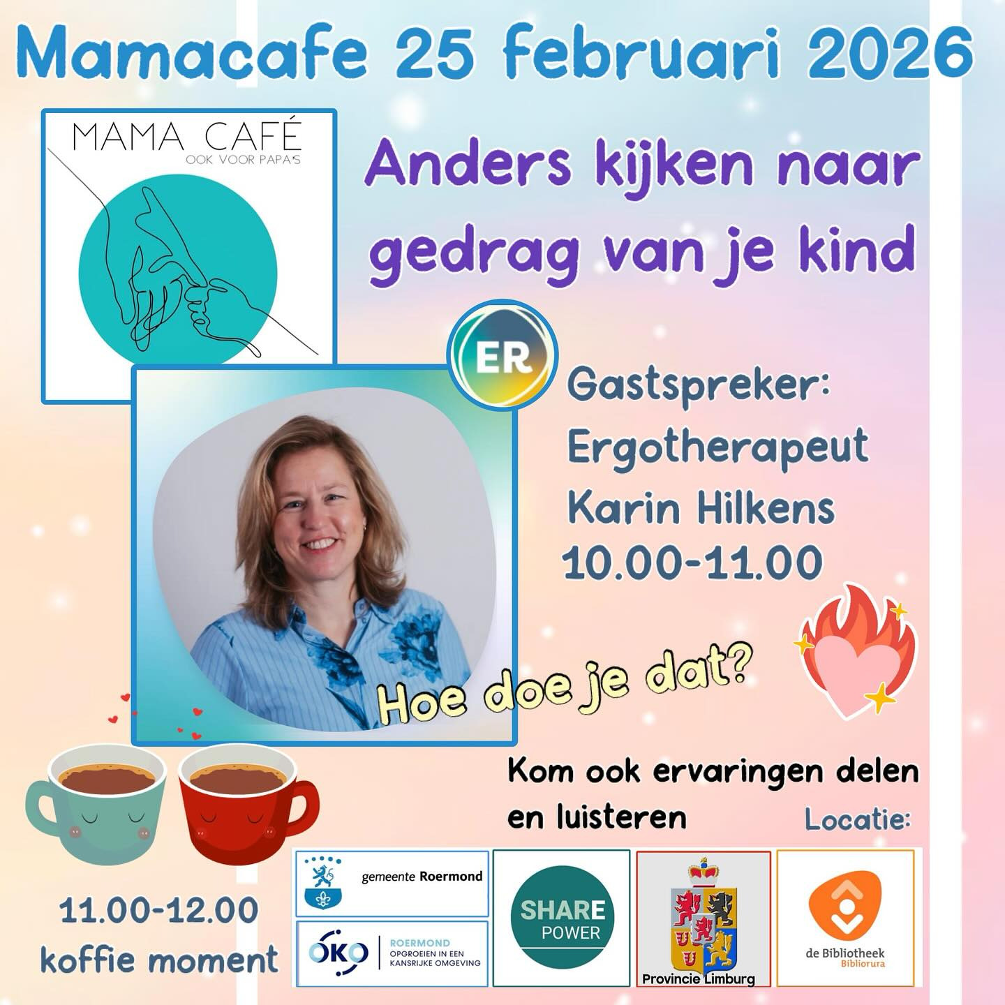 Het Mamacafé in Roermond is al bijna 6 jaar een ontmoetingsplek voor alle vormen van opvoeders met kinderen van 0-4 jaar. Diverse opvoedingsthema’s worden besproken. Het is waardevol voor opvoeders die een klein sociaal netwerk hebben, opzoek zijn naar gelijkgestemden of graag met andere opvoeders in contact komen.