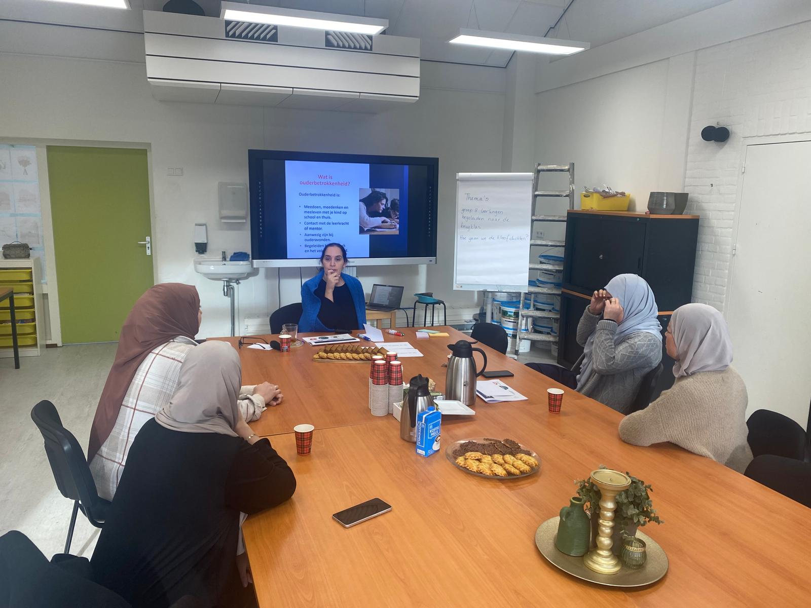 Vandaag was er een bijeenkomst in het kader van ons project voor moeders met een migratieachtergrond op de islamitische basisschool Al-Andalous. Waarbij een groep moeders, een onderwijsassistente, een brugfunctionaris, leden van de ouderraad en de interim directeur aanwezig waren. Het doel van de sessie was ouders te informeren over het Nederlandse onderwijssysteem en het belang van hun rol als moeder of ouder binnen het schoolleven.